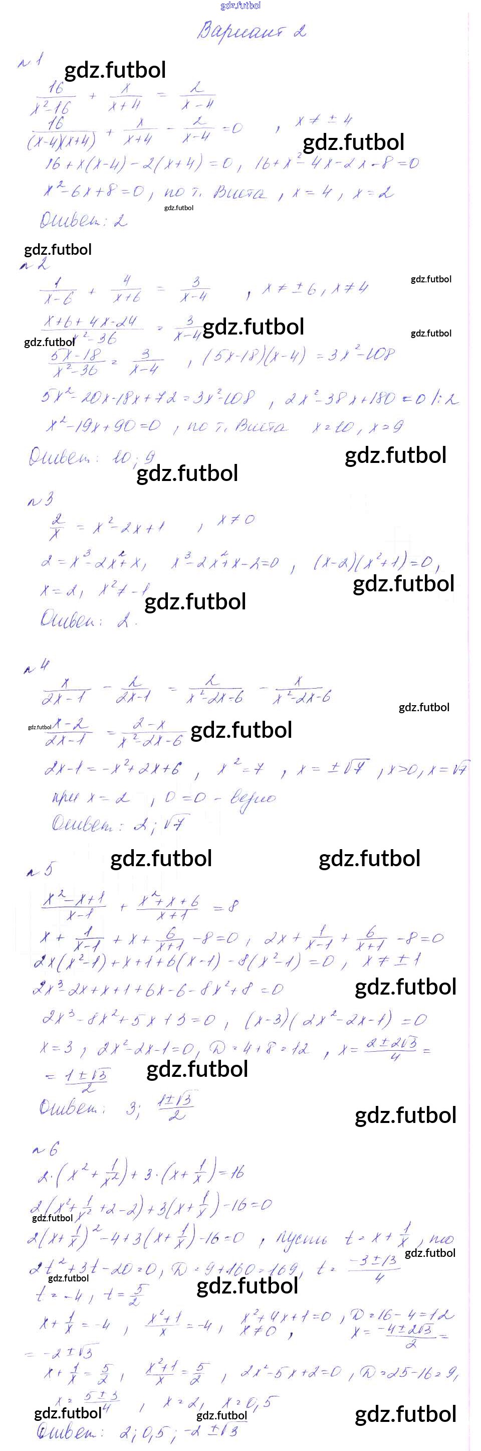 Готовые домашние задания по Алгебре за 8 класс Феоктистов Дидактические материалы 2013 ФГОС - СР-16. Решение дробно-рациональных уравнений вариант 2