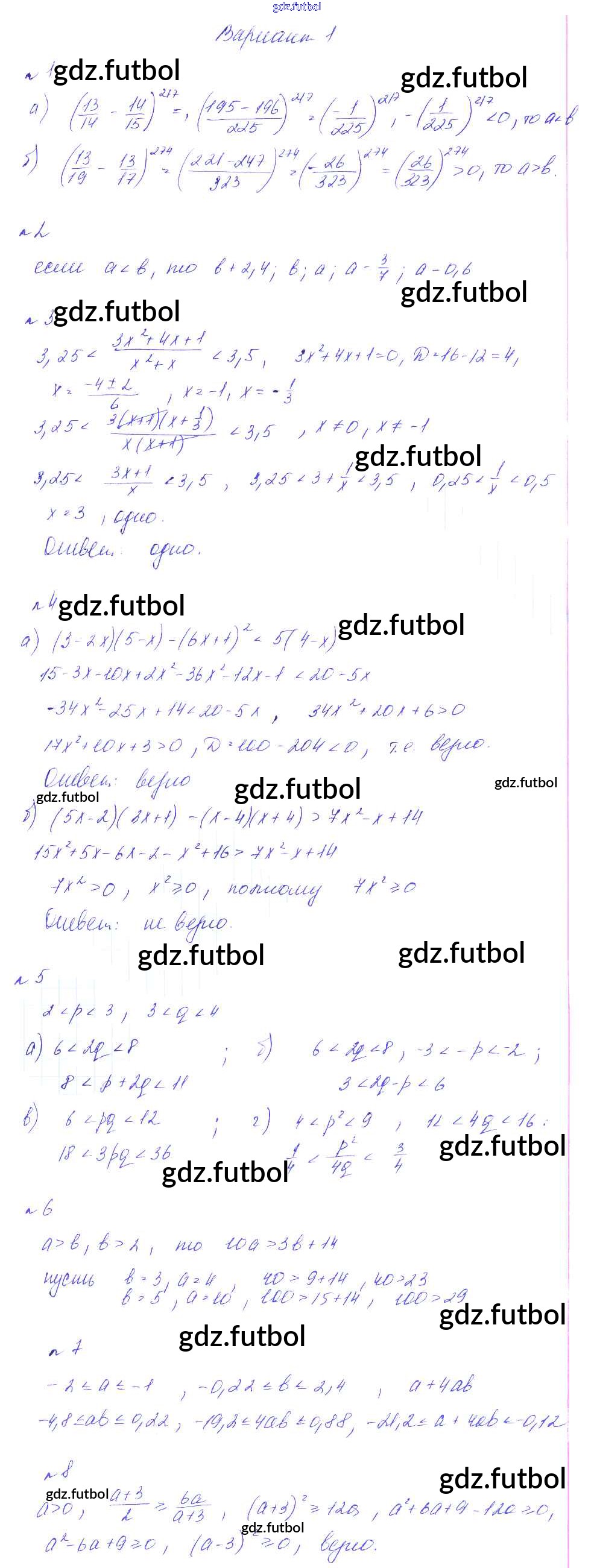 Готовые домашние задания по Алгебре за 8 класс Феоктистов Дидактические материалы 2013 ФГОС - СР-18. Свойства числовых неравенств, оценка значений выражений, доказательство неравенств вариант 1