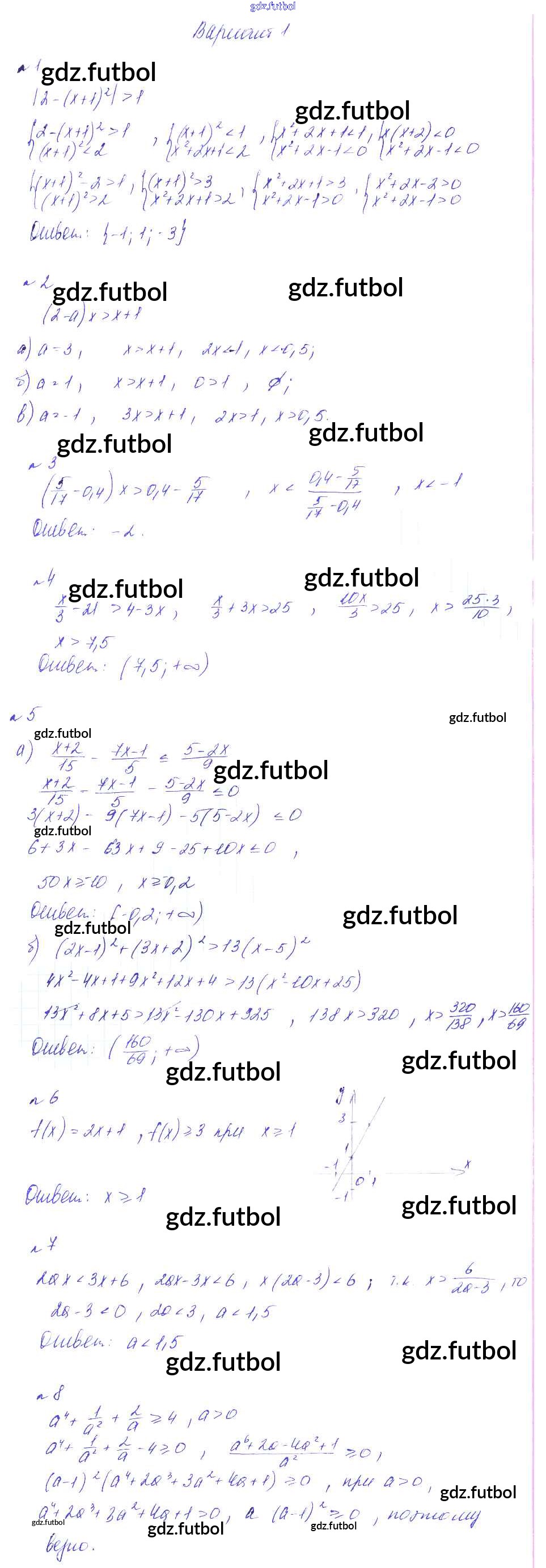 Готовые домашние задания по Алгебре за 8 класс Феоктистов Дидактические материалы 2013 ФГОС - СР-19. Решение неравенств с одной переменной вариант 1