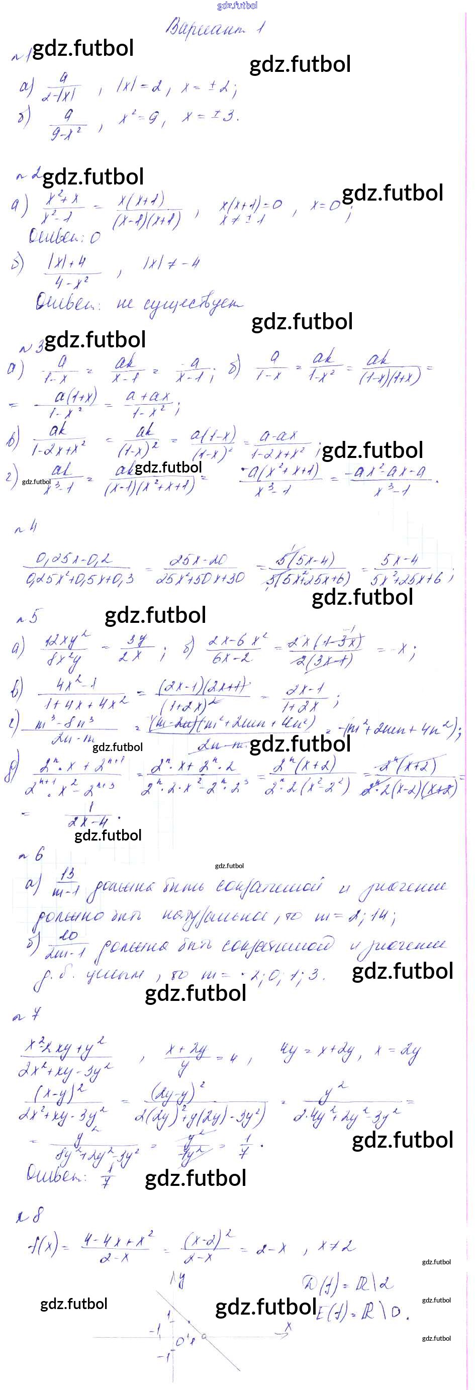 Готовые домашние задания по Алгебре за 8 класс Феоктистов Дидактические материалы 2013 ФГОС - СР-2. Дроби и их свойства вариант 1