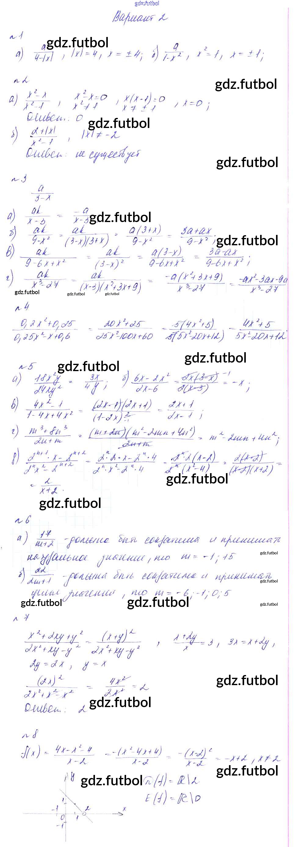 Готовые домашние задания по Алгебре за 8 класс Феоктистов Дидактические материалы 2013 ФГОС - СР-2. Дроби и их свойства вариант 2