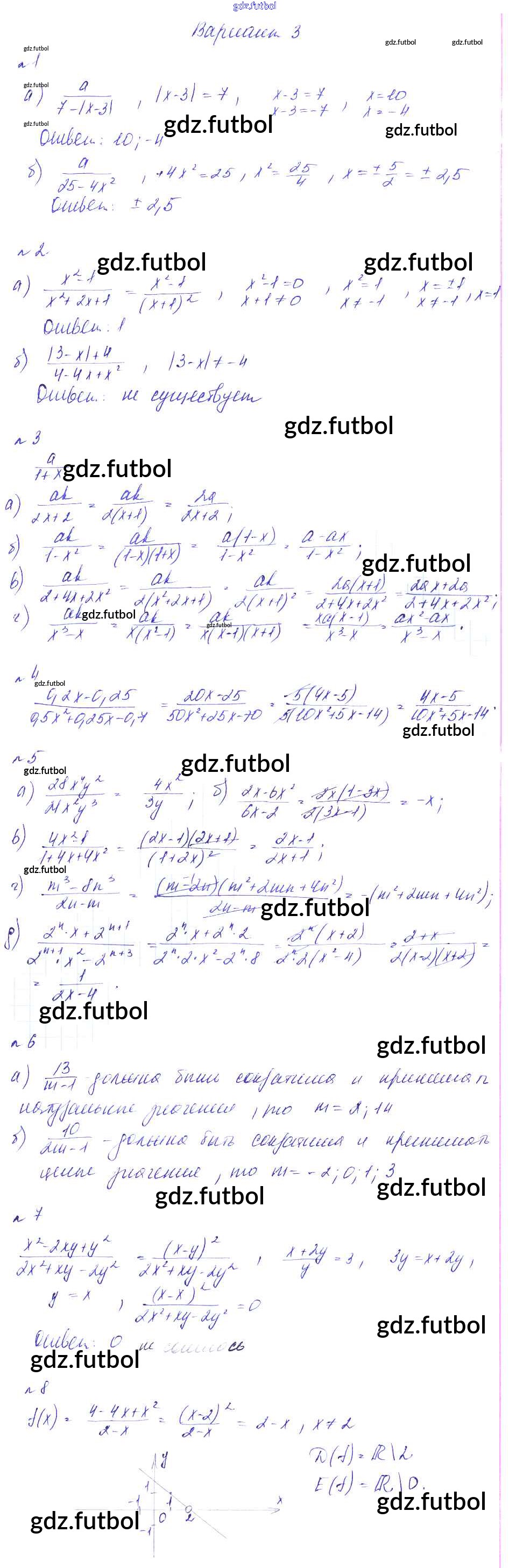 Готовые домашние задания по Алгебре за 8 класс Феоктистов Дидактические материалы 2013 ФГОС - СР-2. Дроби и их свойства вариант 3