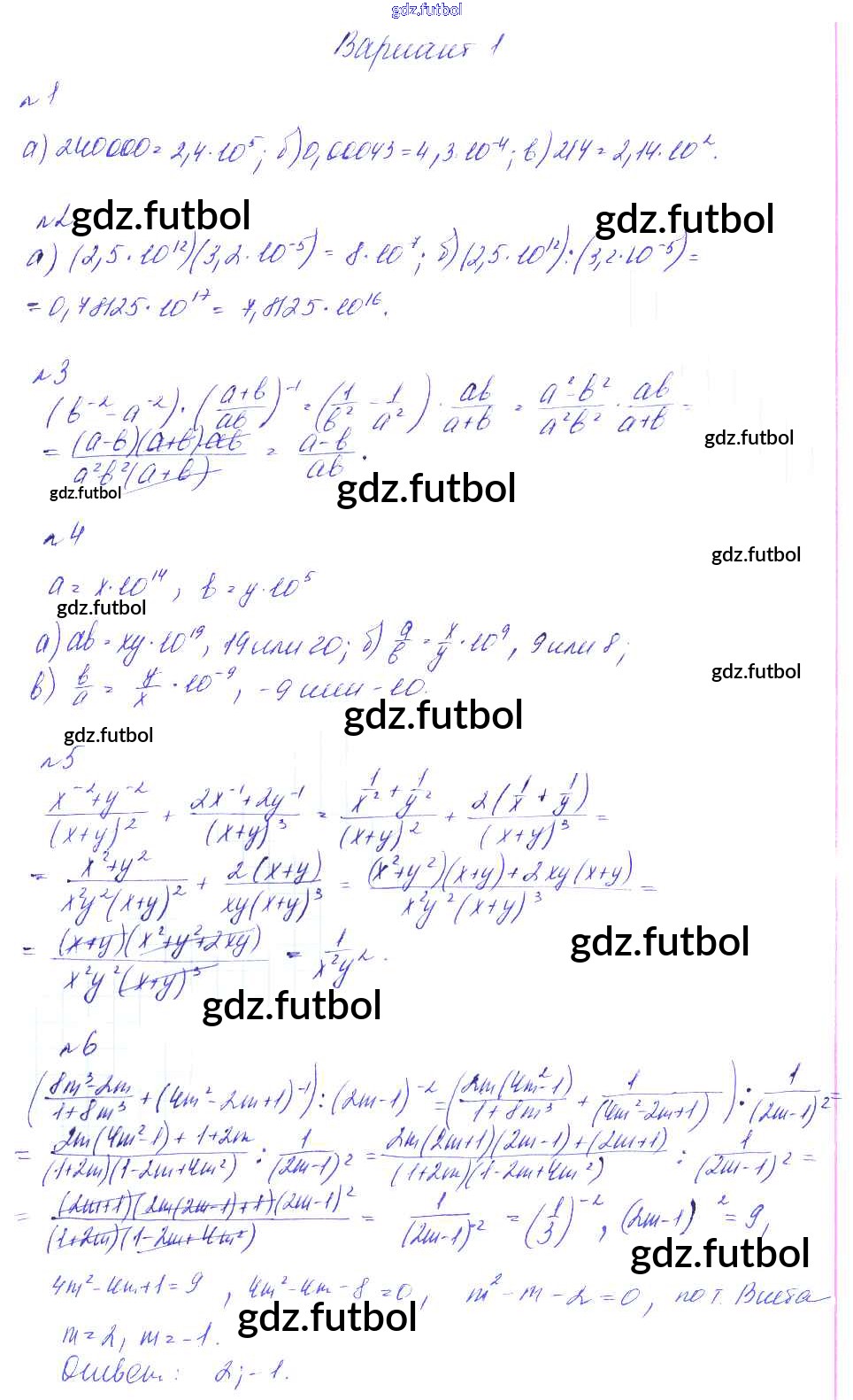Готовые домашние задания по Алгебре за 8 класс Феоктистов Дидактические материалы 2013 ФГОС - СР-22. Преобразование выражений, содержащих степени с целыми показателями. Стандартный вид числа вариант 1