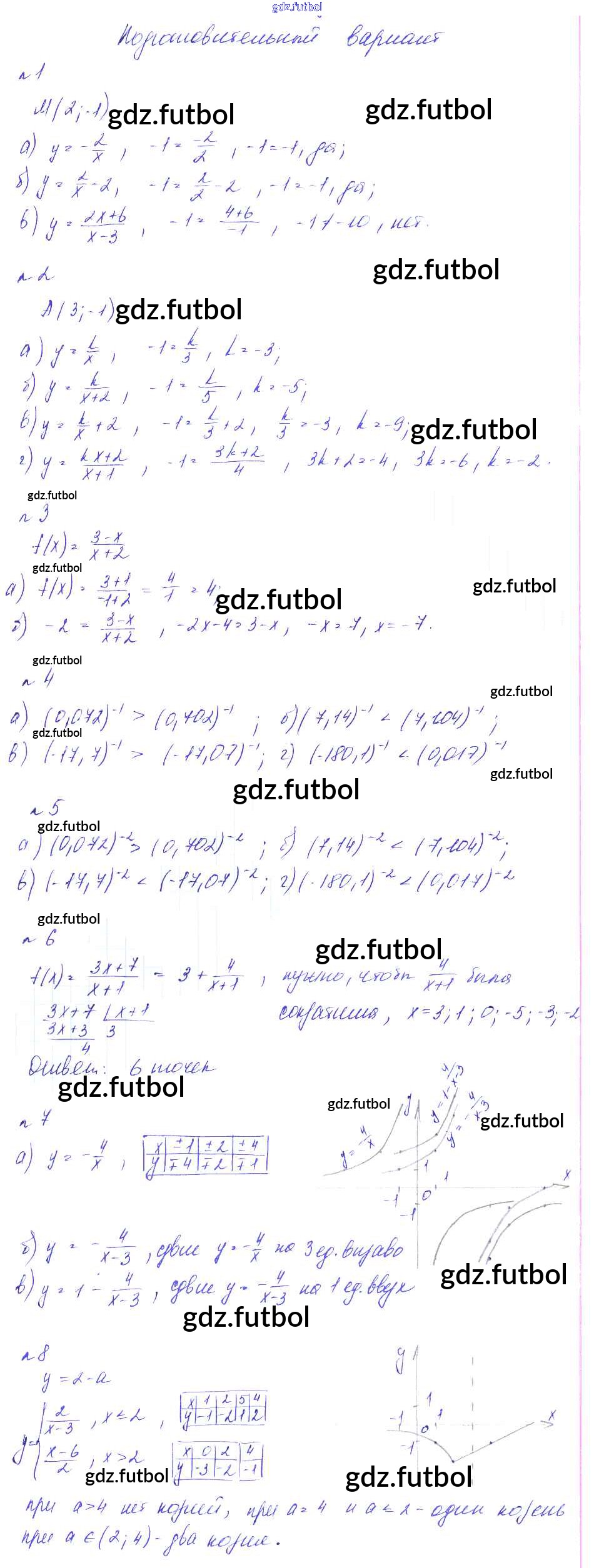 Готовые домашние задания по Алгебре за 8 класс Феоктистов Дидактические материалы 2013 ФГОС - СР-24. Функции y = x в минус первой и минус второй степени подготовительный вариант