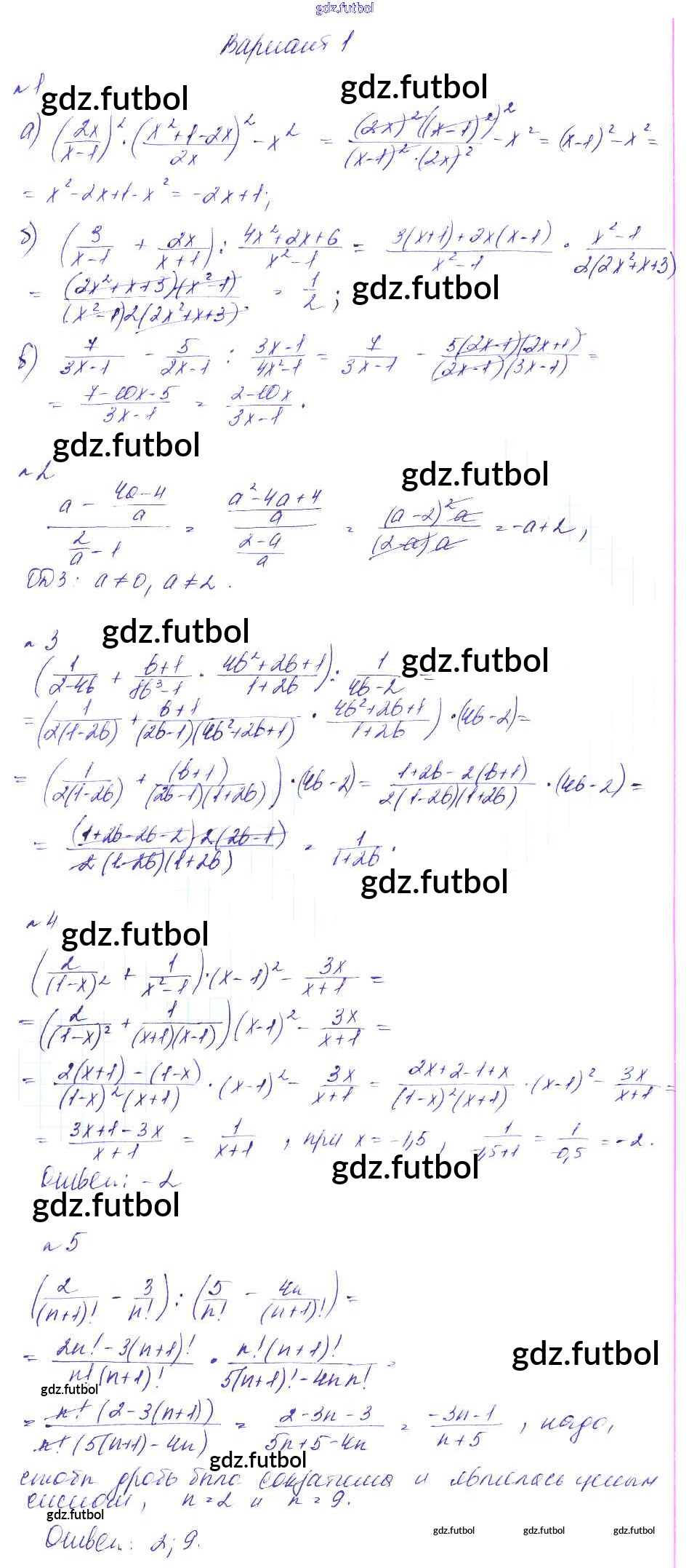 Готовые домашние задания по Алгебре за 8 класс Феоктистов Дидактические материалы 2013 ФГОС - СР-5. Преобразование рациональных выражений вариант 1