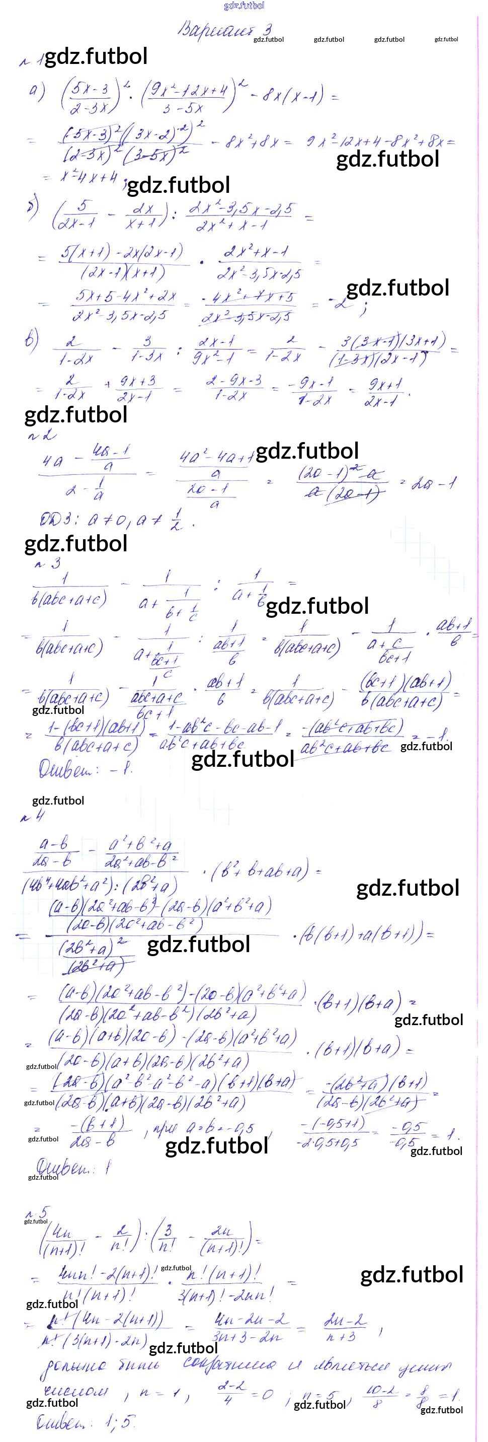 Готовые домашние задания по Алгебре за 8 класс Феоктистов Дидактические материалы 2013 ФГОС - СР-5. Преобразование рациональных выражений вариант 3
