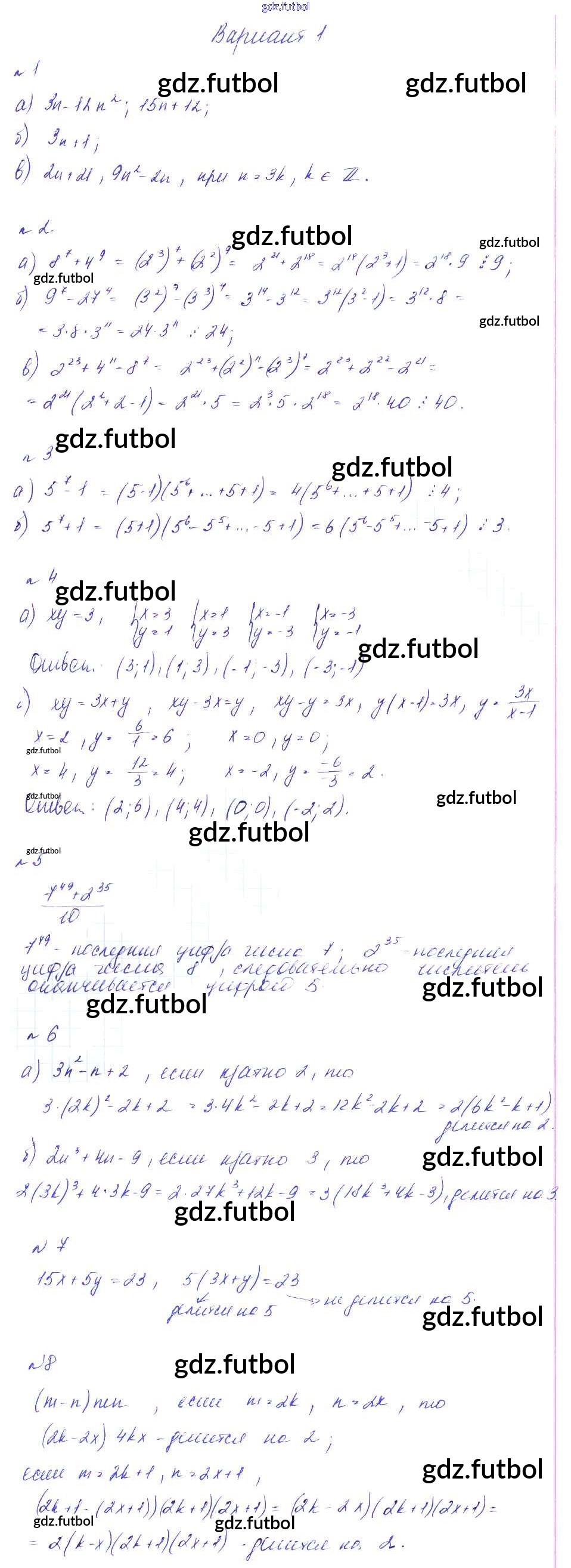 Готовые домашние задания по Алгебре за 8 класс Феоктистов Дидактические материалы 2013 ФГОС - СР-7. Свойства делимости, делимость суммы и произведения вариант 1