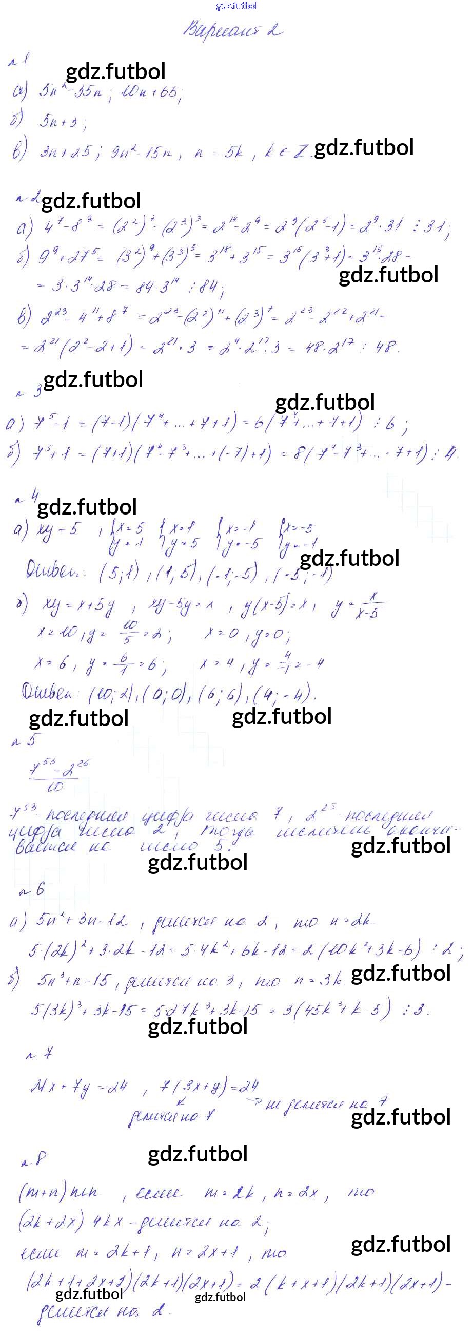Готовые домашние задания по Алгебре за 8 класс Феоктистов Дидактические материалы 2013 ФГОС - СР-7. Свойства делимости, делимость суммы и произведения вариант 2