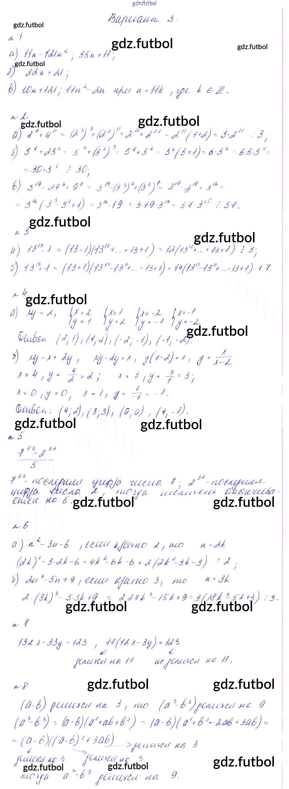 Готовые домашние задания по Алгебре за 8 класс Феоктистов Дидактические материалы 2013 ФГОС - СР-7. Свойства делимости, делимость суммы и произведения вариант 3