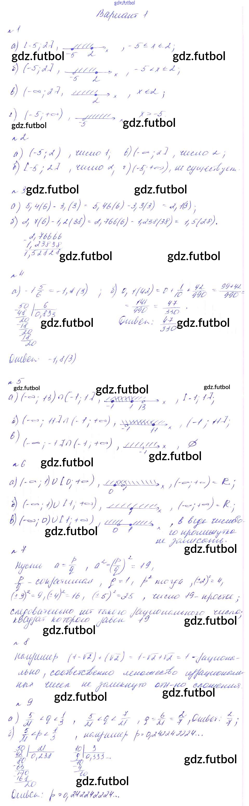 Готовые домашние задания по Алгебре за 8 класс Феоктистов Дидактические материалы 2013 ФГОС - СР-9. Рациональные числа, действительные числа, числовые промежутки вариант 1