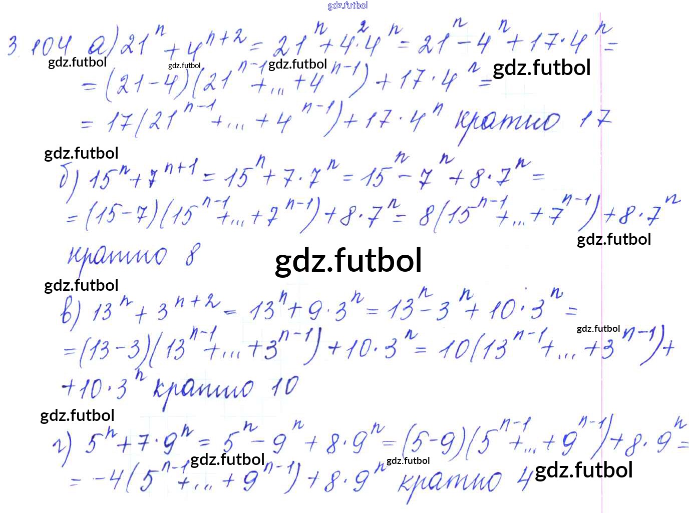Готовые домашние задания по Алгебре за 8 класс Галицкий Сборник задач 2019 ФГОС - §3. Делимость целых чисел 3.104