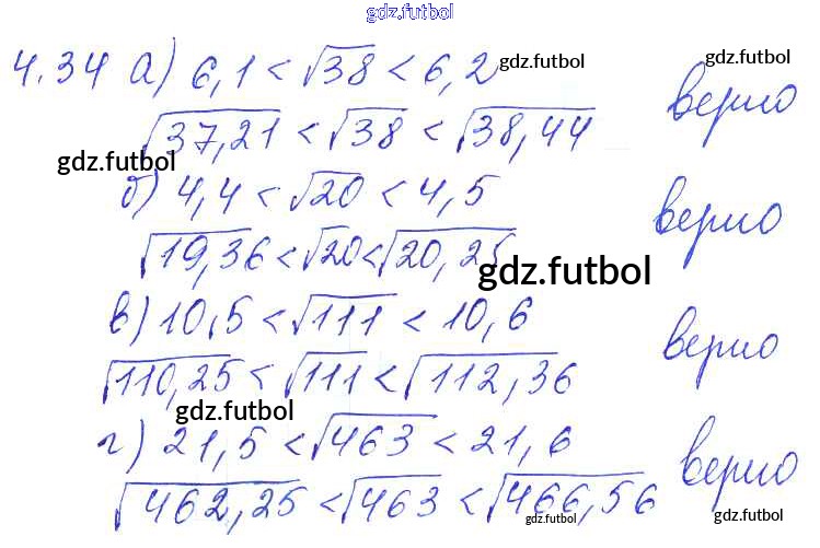 Готовые домашние задания по Алгебре за 8 класс Галицкий Сборник задач 2019 ФГОС - §4. Квадратные корни 4.34