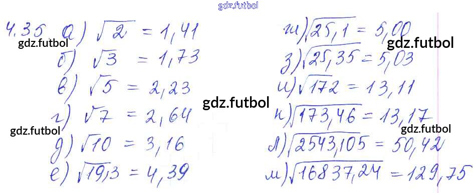Готовые домашние задания по Алгебре за 8 класс Галицкий Сборник задач 2019 ФГОС - §4. Квадратные корни 4.35