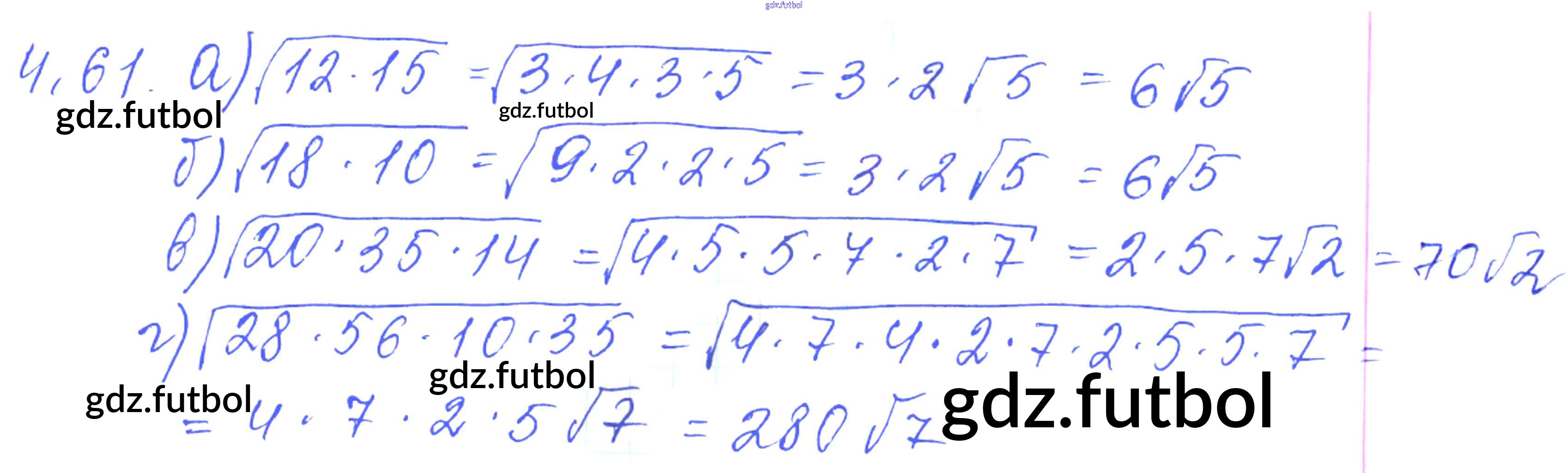 Готовые домашние задания по Алгебре за 8 класс Галицкий Сборник задач 2019 ФГОС - §4. Квадратные корни 4.61