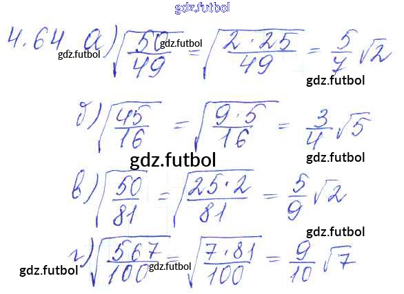 Готовые домашние задания по Алгебре за 8 класс Галицкий Сборник задач 2019 ФГОС - §4. Квадратные корни 4.64