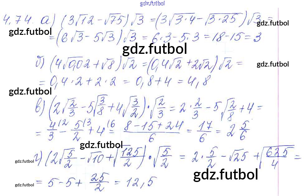 Готовые домашние задания по Алгебре за 8 класс Галицкий Сборник задач 2019 ФГОС - §4. Квадратные корни 4.74
