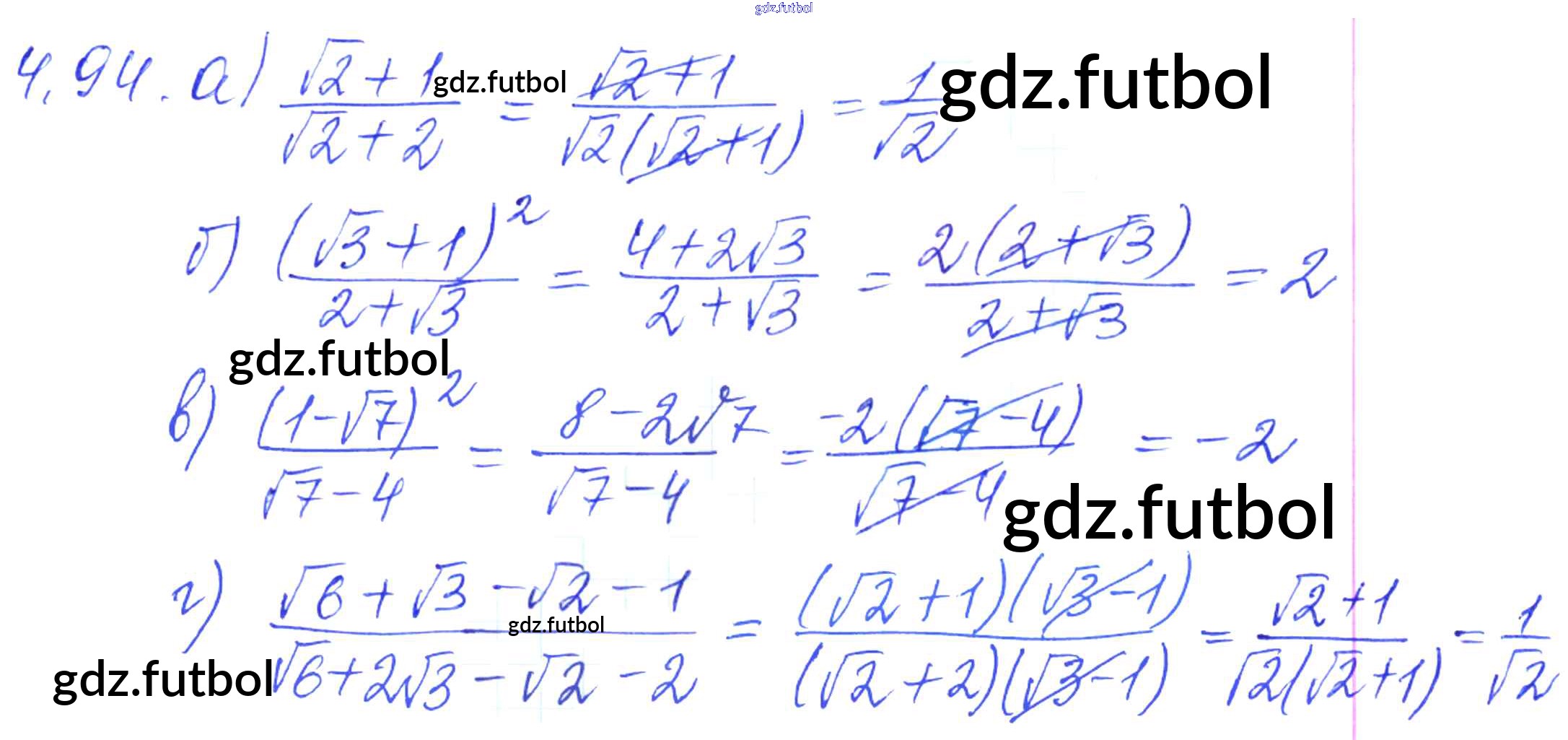 Готовые домашние задания по Алгебре за 8 класс Галицкий Сборник задач 2019 ФГОС - §4. Квадратные корни 4.94
