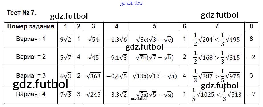 Готовые домашние задания по Алгебре за 8 класс Глазков Контрольно-измерительные материалы (КИМ) 2014 ФГОС - Тесты 7