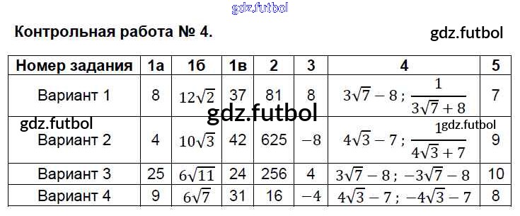 Готовые домашние задания по Алгебре за 8 класс Глазков Контрольно-измерительные материалы (КИМ) 2014 ФГОС - Контрольные работы 4