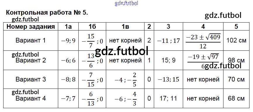 Готовые домашние задания по Алгебре за 8 класс Глазков Контрольно-измерительные материалы (КИМ) 2014 ФГОС - Контрольные работы 5