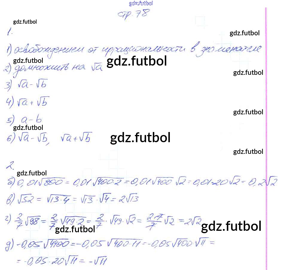 Готовые домашние задания по Алгебре за 8 класс Ключникова Рабочая тетрадь УМК 2013 ФГОС - Часть 1 78