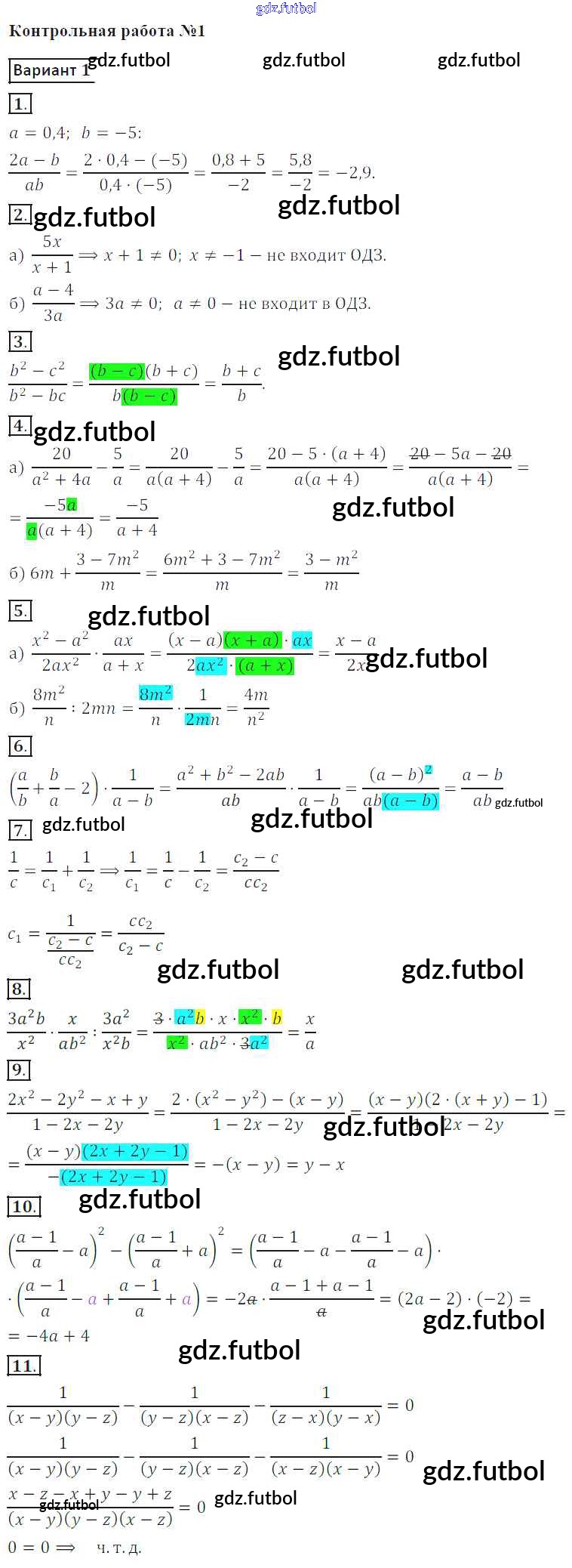 Готовые домашние задания по Алгебре за 8 класс Кузнецова Контрольные работы 2016 ФГОС - Контрольная работа 1. Варианты 1