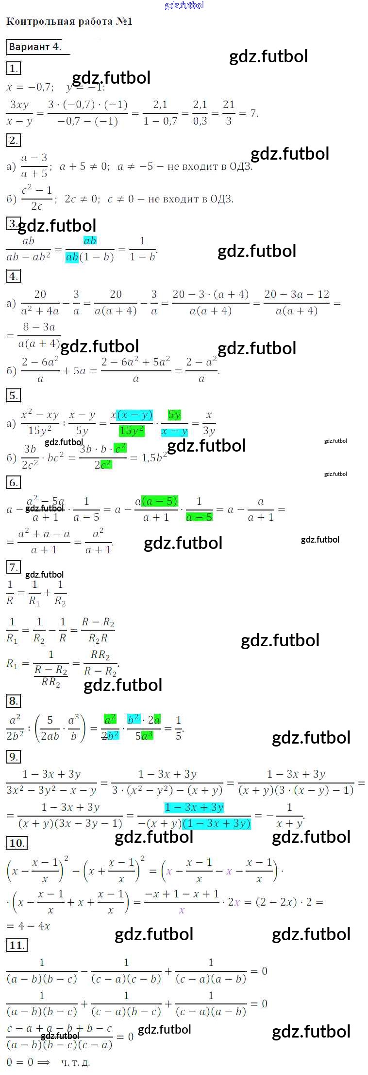 Готовые домашние задания по Алгебре за 8 класс Кузнецова Контрольные работы 2016 ФГОС - Контрольная работа 1. Варианты 4