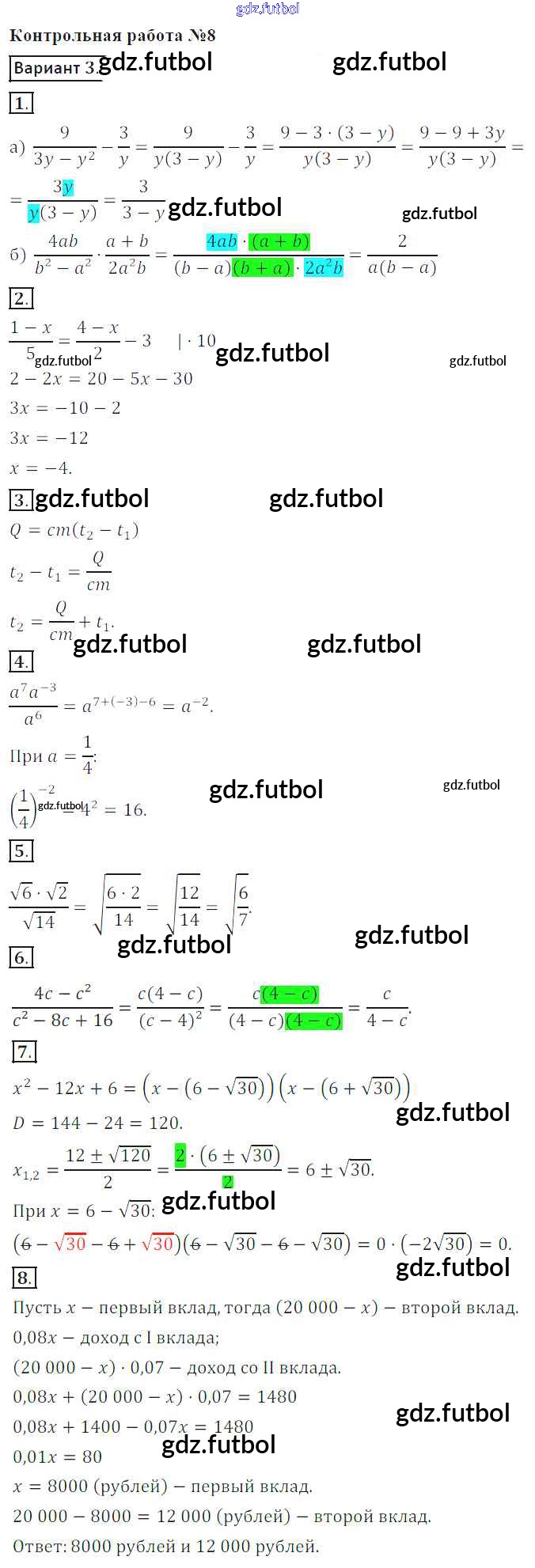Готовые домашние задания по Алгебре за 8 класс Кузнецова Контрольные работы 2016 ФГОС - Контрольная работа 8. Варианты 3