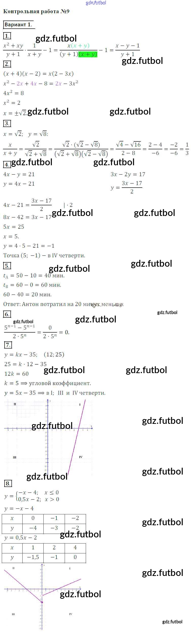 Готовые домашние задания по Алгебре за 8 класс Кузнецова Контрольные работы 2016 ФГОС - Контрольная работа 9. Варианты 1