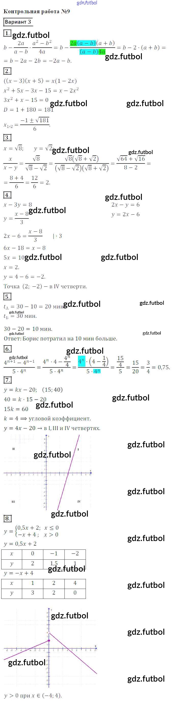 Готовые домашние задания по Алгебре за 8 класс Кузнецова Контрольные работы 2016 ФГОС - Контрольная работа 9. Варианты 3