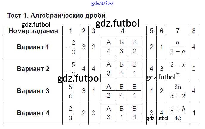 Готовые домашние задания по Алгебре за 8 класс Кузнецова Тематические тесты Базовый уровень 2018 ФГОС - Тесты 1