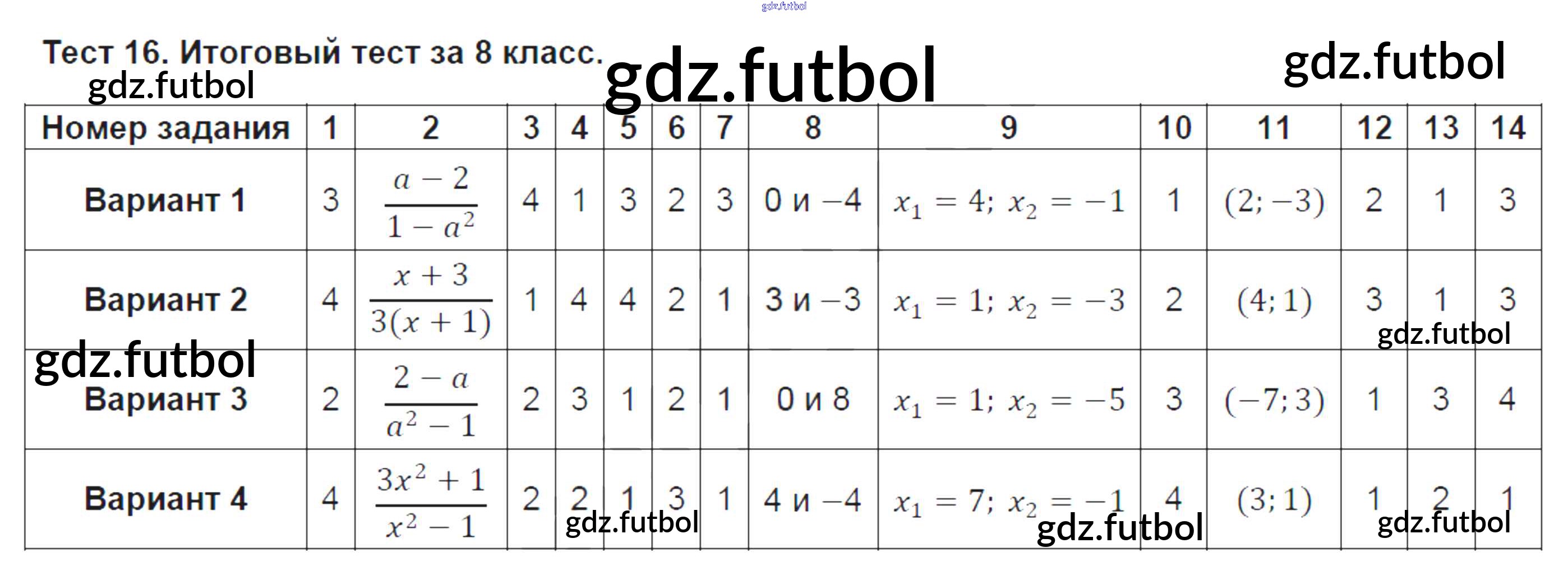 Готовые домашние задания по Алгебре за 8 класс Кузнецова Тематические тесты Базовый уровень 2018 ФГОС - Тесты 16