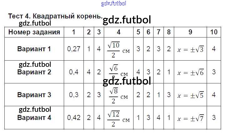 Готовые домашние задания по Алгебре за 8 класс Кузнецова Тематические тесты Базовый уровень 2018 ФГОС - Тесты 4