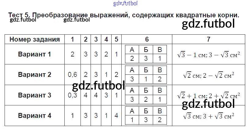 Готовые домашние задания по Алгебре за 8 класс Кузнецова Тематические тесты Базовый уровень 2018 ФГОС - Тесты 5
