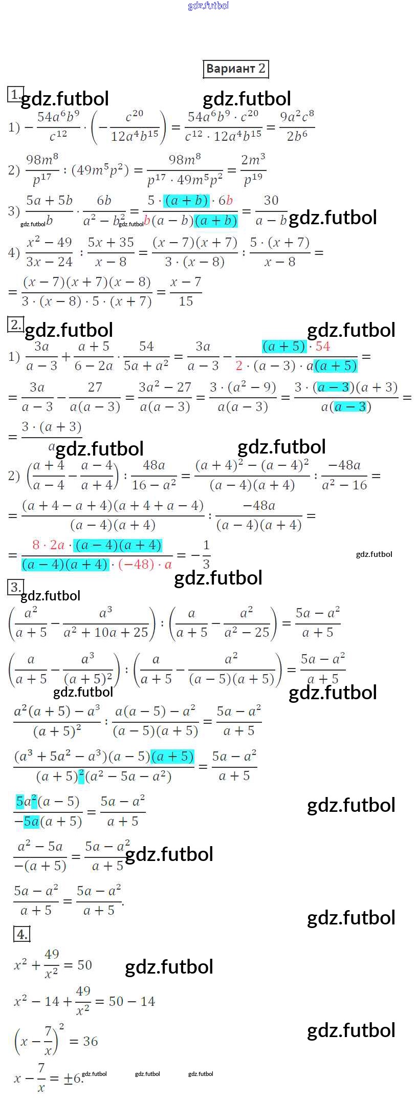 Готовые домашние задания по Алгебре за 8 класс Мерзляк Дидактические материалы Алгоритм успеха 2016 ФГОС - КР-2. Умножение и деление рациональных дробей. Тождественные преобразования рациональных дробей вариант 2