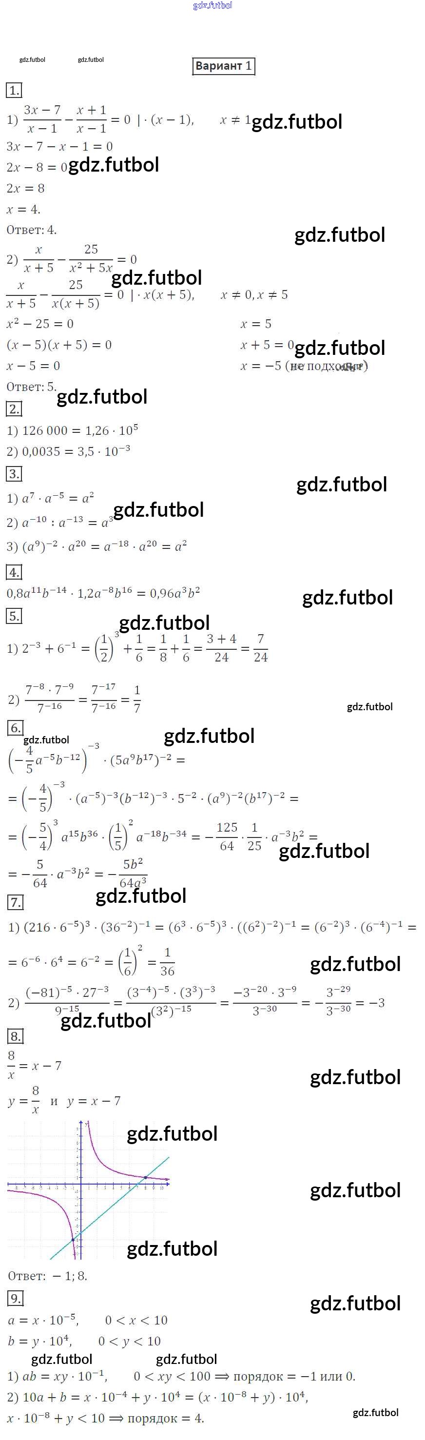 Готовые домашние задания по Алгебре за 8 класс Мерзляк Дидактические материалы Алгоритм успеха 2016 ФГОС - КР-3. Рациональные уравнения. Степень с целым отрицательным показателем вариант 1