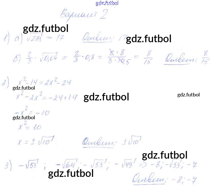 Готовые домашние задания по Алгебре за 8 класс Попов Контрольные и самостоятельные работы УМК 2016 ФГОС - СР-10. Варианты 2