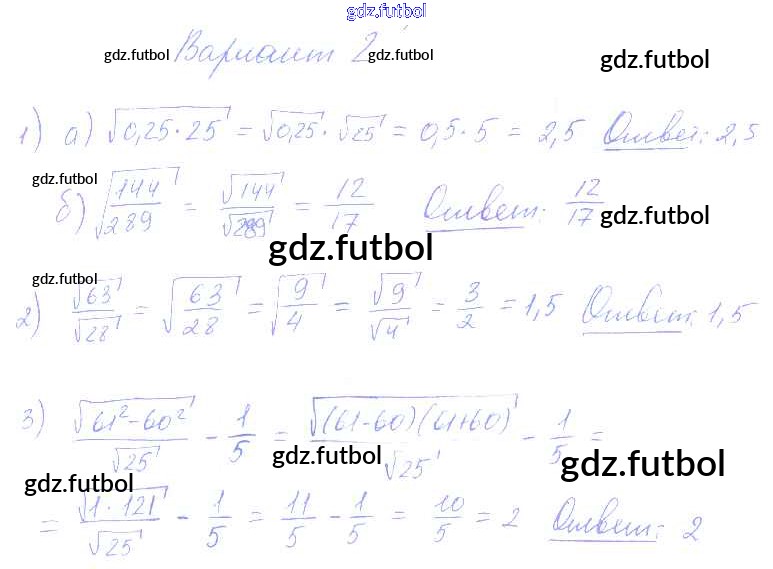 Готовые домашние задания по Алгебре за 8 класс Попов Контрольные и самостоятельные работы УМК 2016 ФГОС - СР-14. Варианты 2