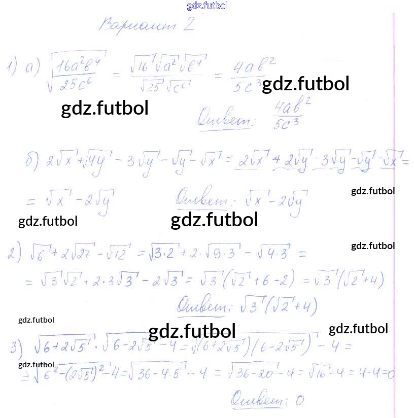 Готовые домашние задания по Алгебре за 8 класс Попов Контрольные и самостоятельные работы УМК 2016 ФГОС - СР-15. Варианты 2