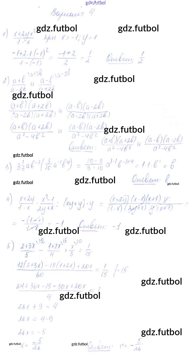 Готовые домашние задания по Алгебре за 8 класс Попов Контрольные и самостоятельные работы УМК 2016 ФГОС - КР-1. Варианты 4