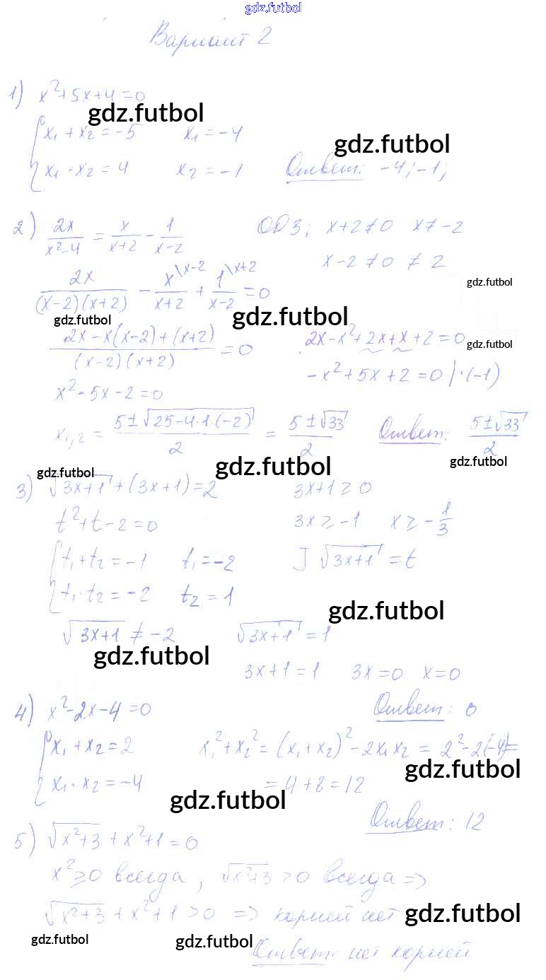 Готовые домашние задания по Алгебре за 8 класс Попов Контрольные и самостоятельные работы УМК 2016 ФГОС - КР-4. Варианты 2