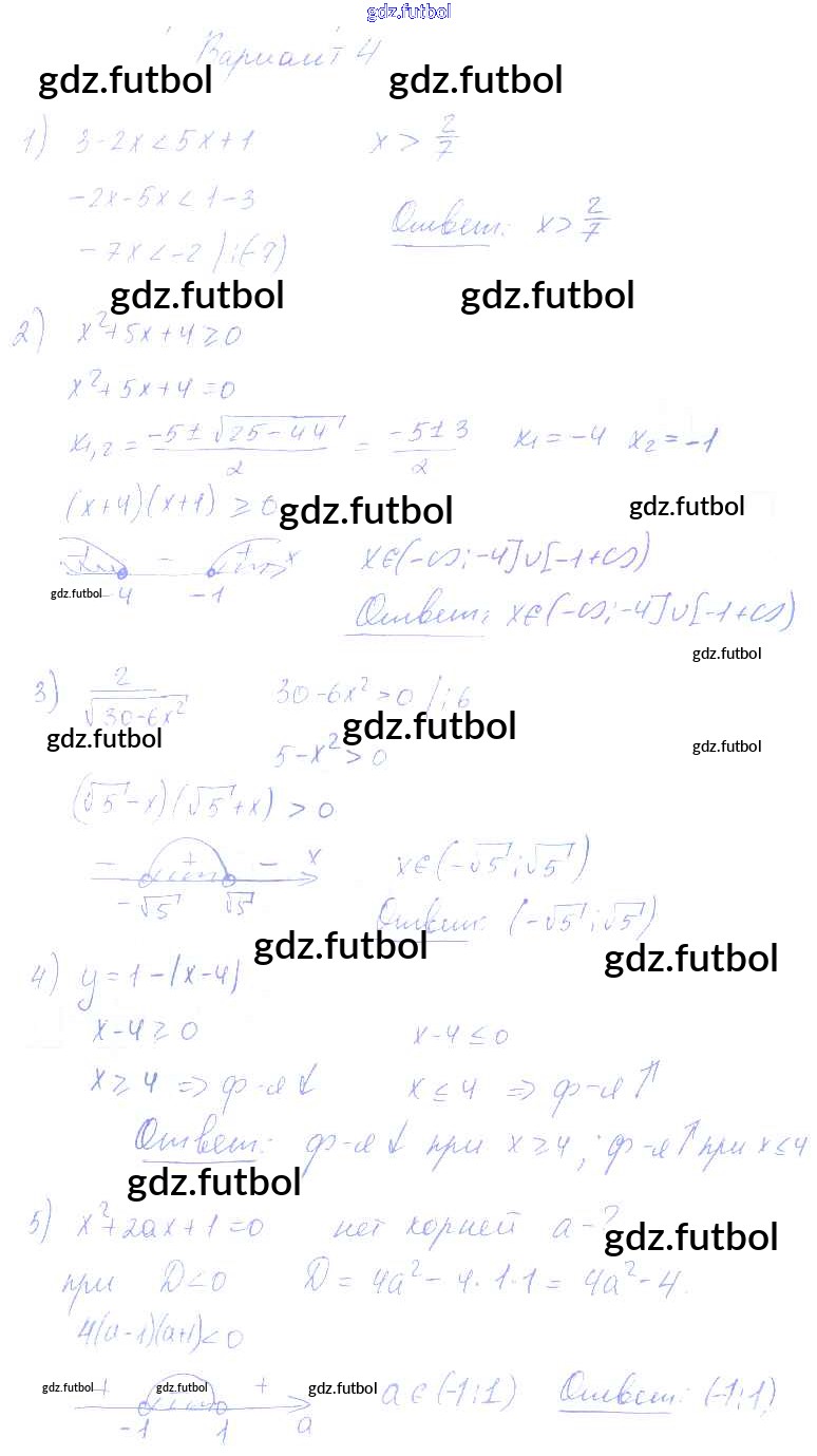 Готовые домашние задания по Алгебре за 8 класс Попов Контрольные и самостоятельные работы УМК 2016 ФГОС - КР-5. Варианты 4