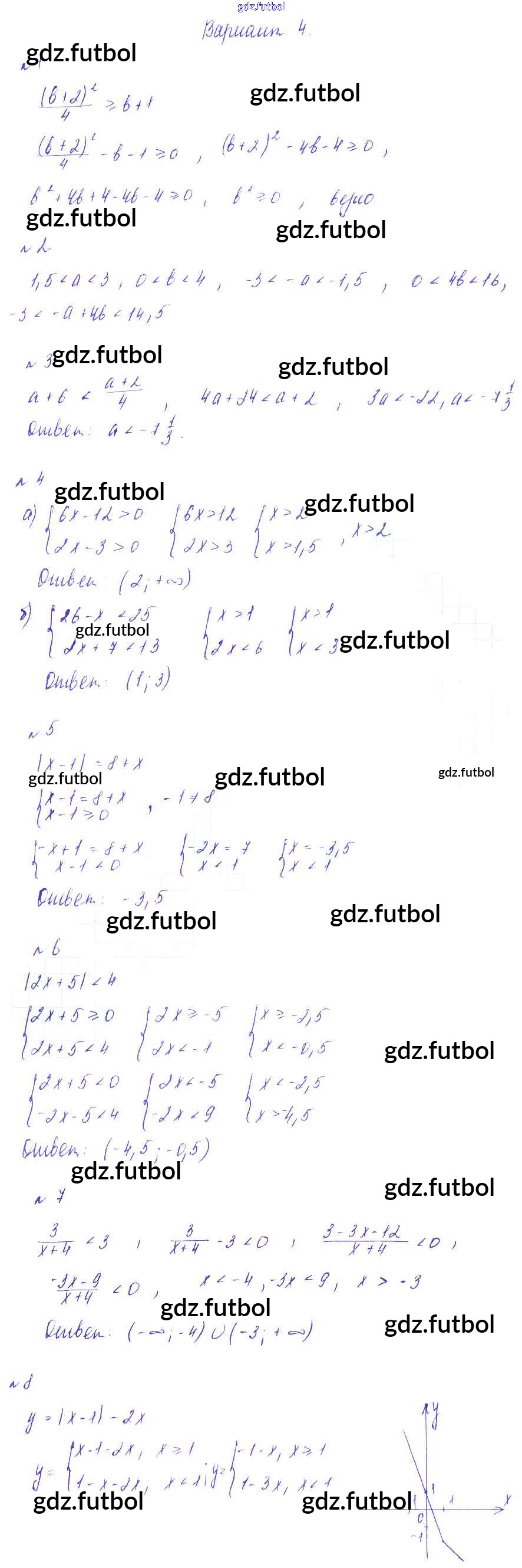 Готовые домашние задания по Алгебре за 8 класс Зив Дидактические материалы 2012 ФГОС - КР №1. Неравенства. Варианты 4