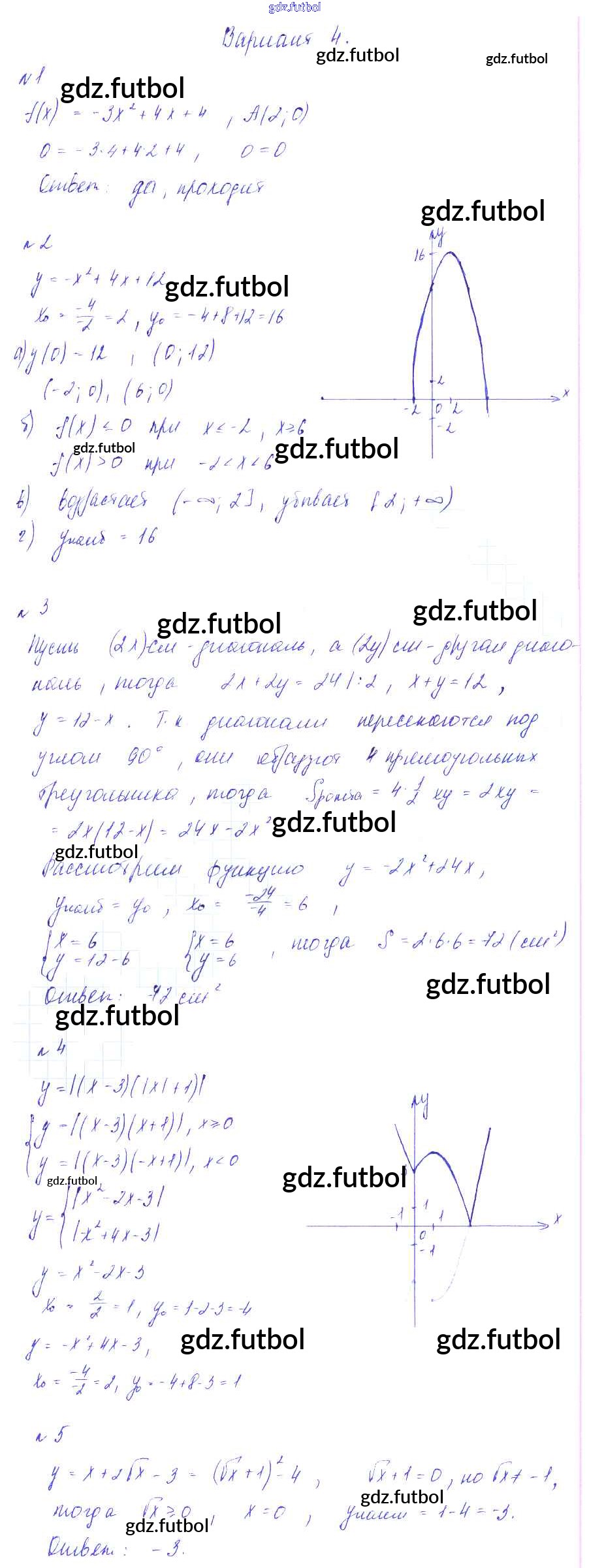 Готовые домашние задания по Алгебре за 8 класс Зив Дидактические материалы 2012 ФГОС - КР №4. Квадратные уравнения. Варианты 4