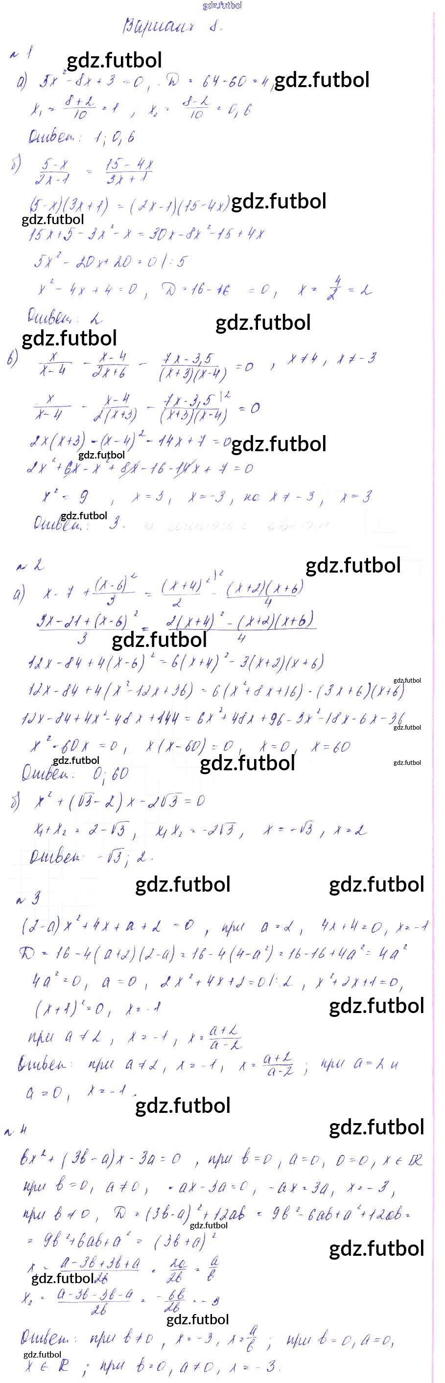 Готовые домашние задания по Алгебре за 8 класс Зив Дидактические материалы 2012 ФГОС - СР №10. Решение квадратных уравнений Вариант-8