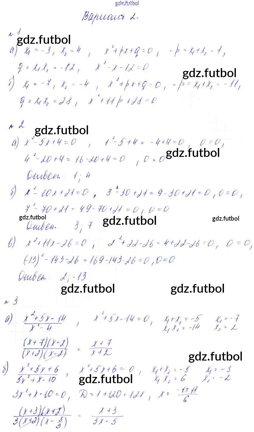 Готовые домашние задания по Алгебре за 8 класс Зив Дидактические материалы 2012 ФГОС - СР №11. Теорема Виета Вариант-2