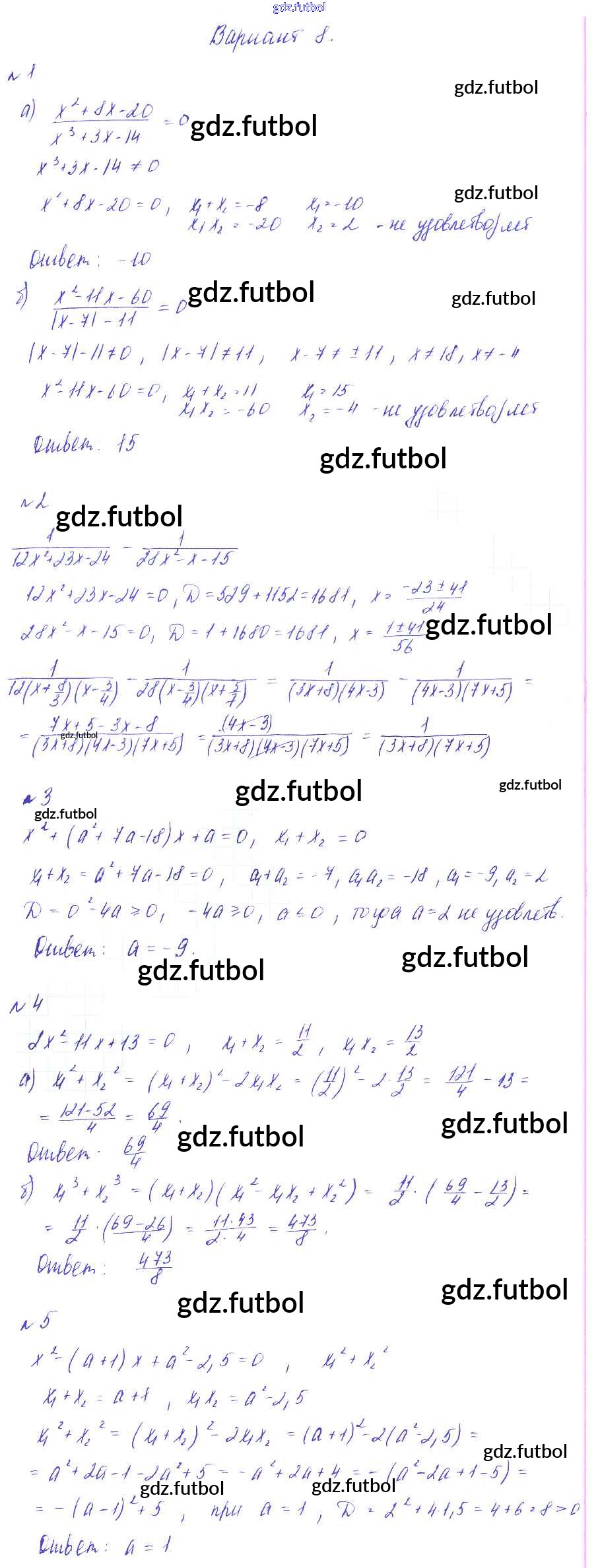 Готовые домашние задания по Алгебре за 8 класс Зив Дидактические материалы 2012 ФГОС - СР №11. Теорема Виета Вариант-8