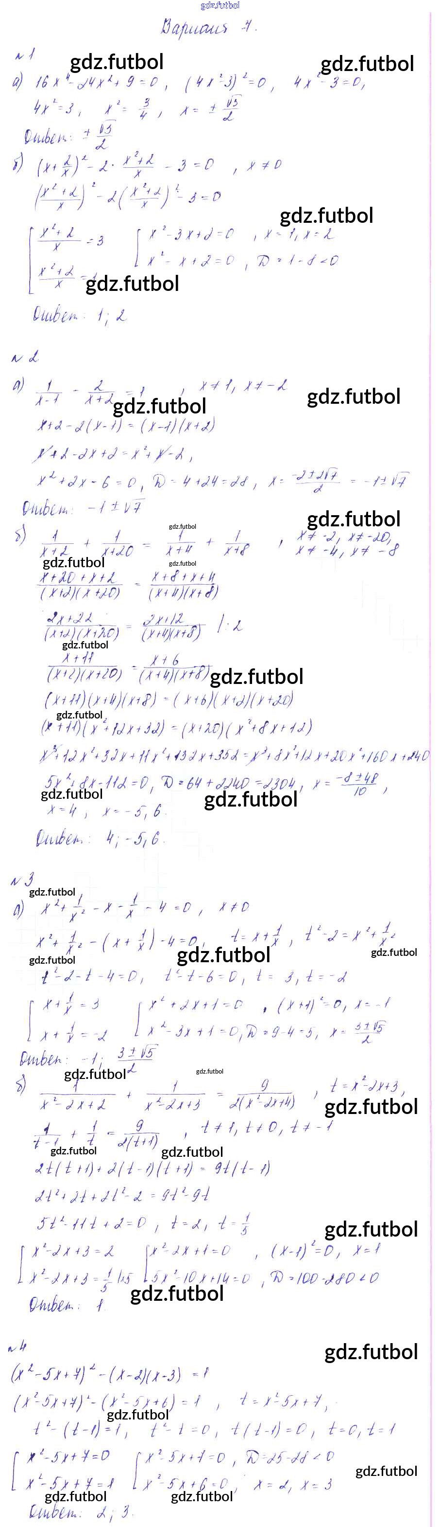 Готовые домашние задания по Алгебре за 8 класс Зив Дидактические материалы 2012 ФГОС - СР №12. Уравнения, сводящиеся к квадратным Вариант-7