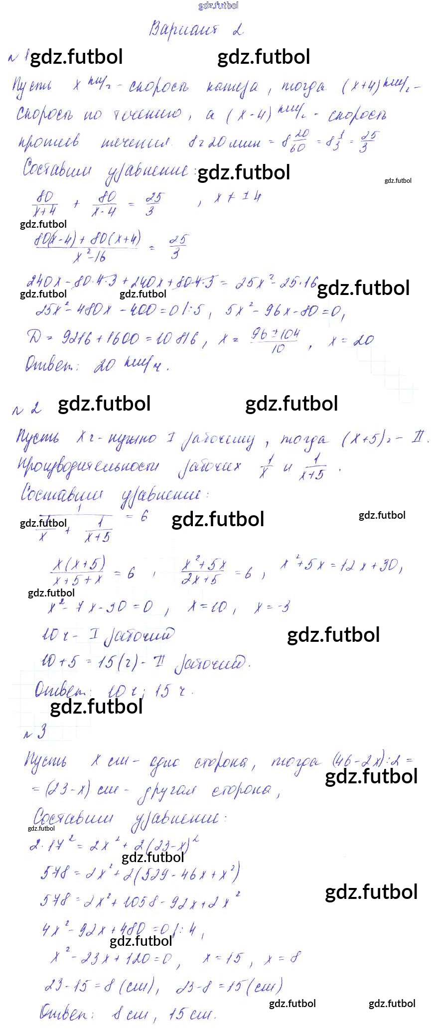 Готовые домашние задания по Алгебре за 8 класс Зив Дидактические материалы 2012 ФГОС - СР №13. Решение задач с помощью квадратных уравнений Вариант-2