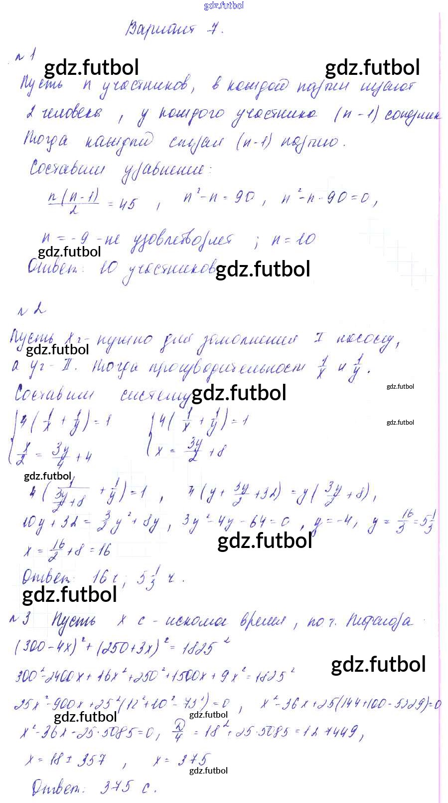 Готовые домашние задания по Алгебре за 8 класс Зив Дидактические материалы 2012 ФГОС - СР №13. Решение задач с помощью квадратных уравнений Вариант-7